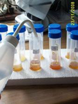 Glucose Oxidase H2O2 peroxide uitkomst. Glucose + Water + Zuurstof + Glucose-oxidase >>>Gluconzuur + Waterstofperoxide. Het enzym in de honing wordt door de bijen afgegeven in de kopklieren tijdens de verwerking van nectar naar honing. Een enzymrijke honing geeft H2O2. Deze honing kan dan worden toegepast bij wondbehandeling en brandwonden. Er zijn ook uitzondering hierop zoals een hoog vitamine C gehalte waarbij het enzym zal oxideren met de vitaminen. Voor een uitgebreide beschrijving verwijzen wij naar : http://www.bitsandbees.nl/enzymglucoseoxidase.htm |