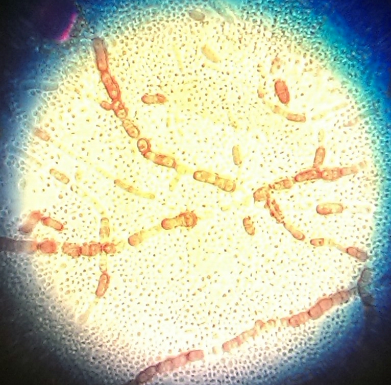 Gaan we de honing van zeer dichtbij bekijken dan zien we onder de microscoop een geheel ander beeld dan bij florale honing. In deze honing komen schimmelsporen voor als ketens. Deze honingdauwgisten veroorzaken geen gisting van de honing maar behoren tot de suikertolerante gisten en lijken op Nosema-sporen. Verder zien we veel calciumoxalaatgruis. Deze bijzonderheden zijn in florale honingen niet of zelden aanwezig en duiden dus op honingdauwhoning.