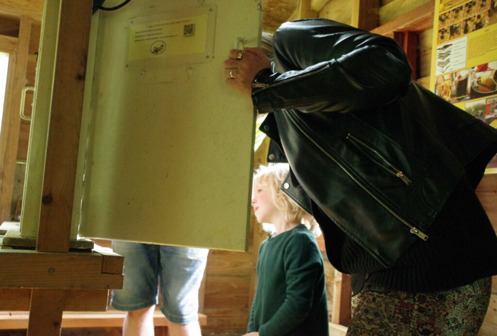 In de bijenstal kon men in de observatiekast de bijtjes zien in- en uitvliegen. Altijd een fascinerend gezicht de werkzaamheden te aanschouwen door en voor jong en wat ouder.
