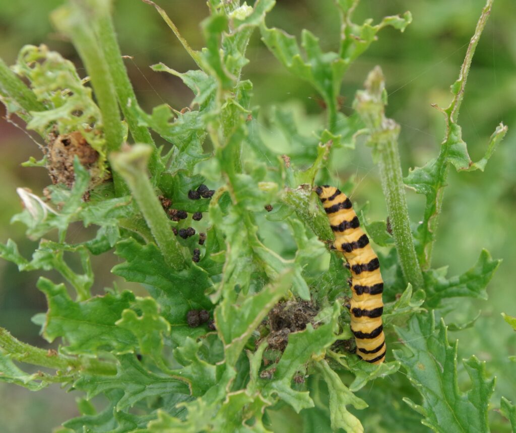 De biodiversiteit in de directe omgeving is ook het kijken waard, want langs het pad naar de stal met een verscheidenheid van bloeiende bloemen , aangeplante dop- en struikheide was ook de rups van de St-Jacobsvlinder te vinden, flink blad etende en “reststoffen” achterlatend.