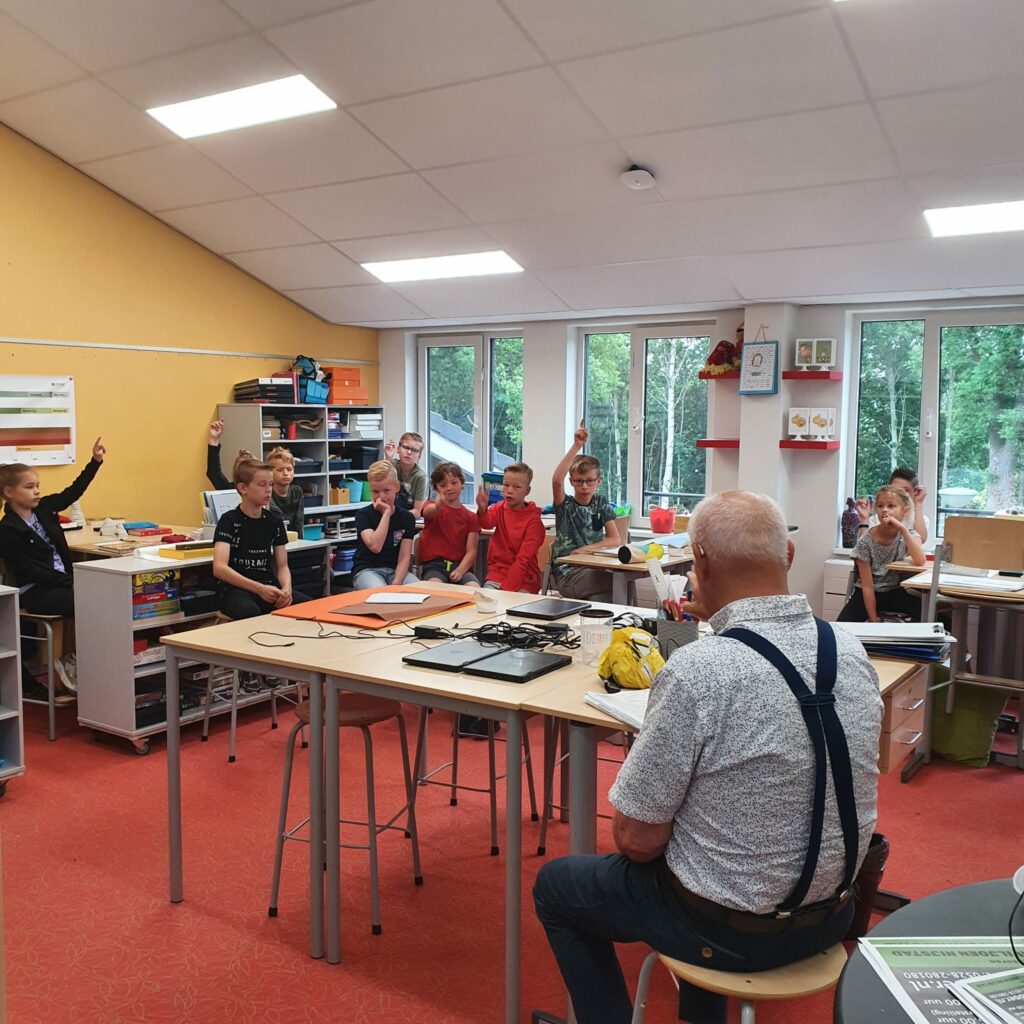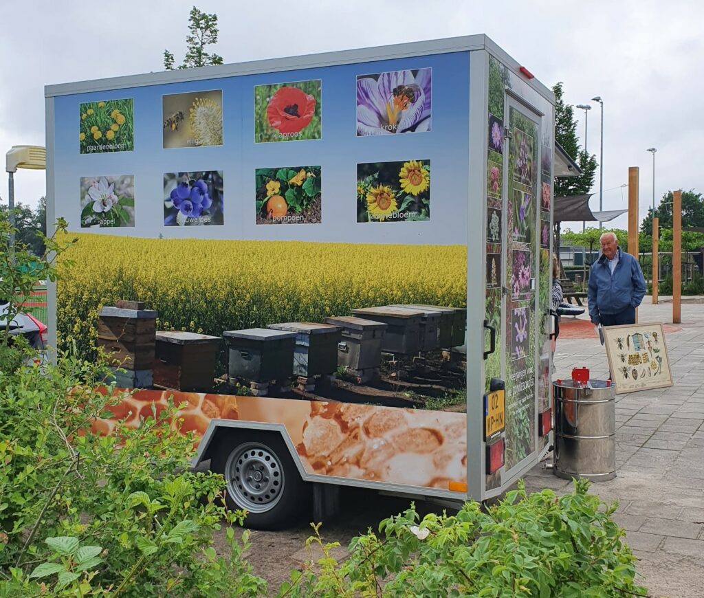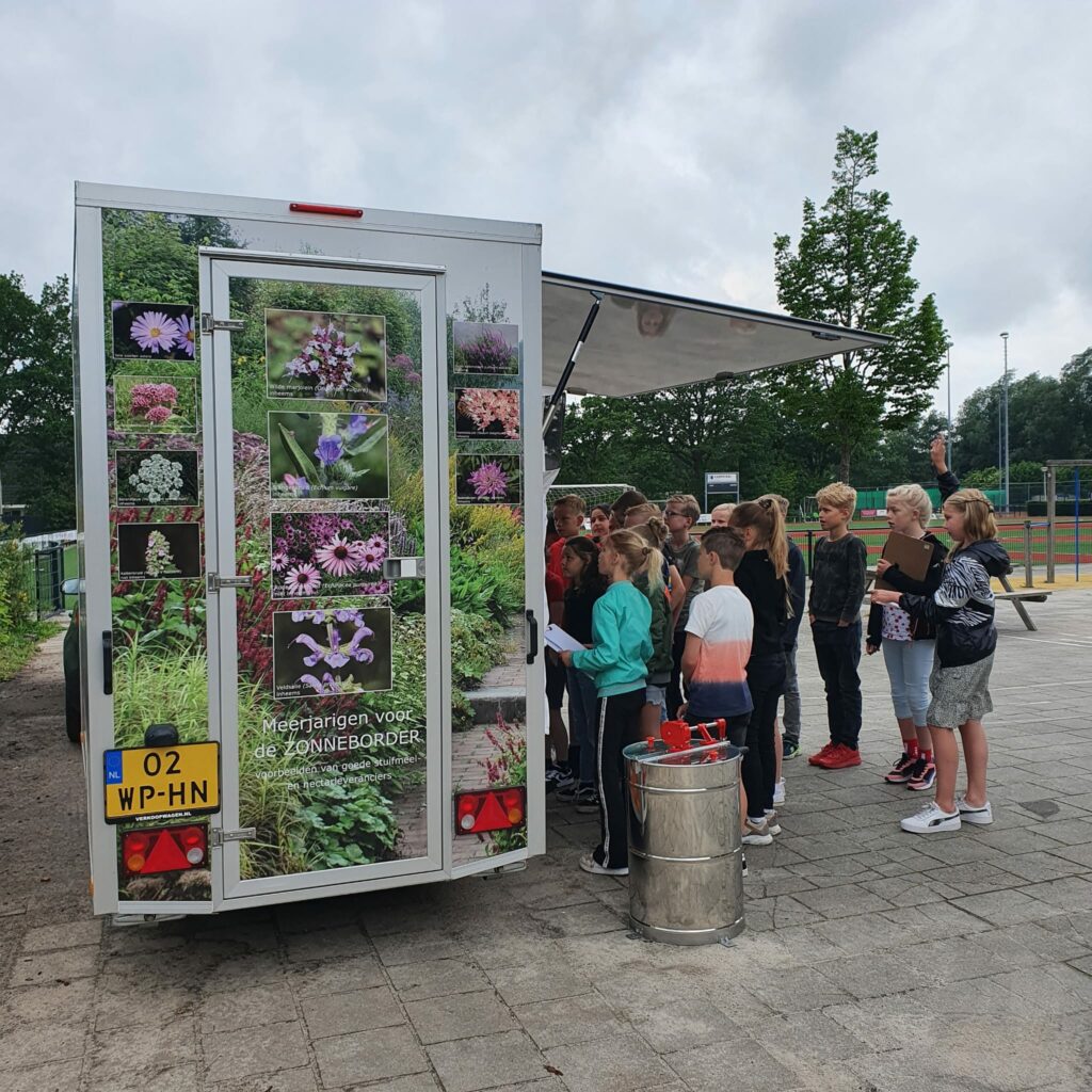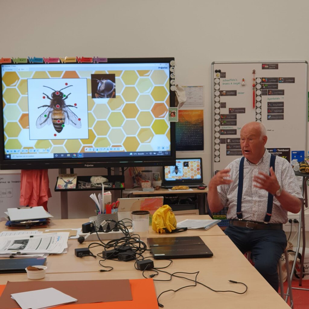 Onlangs brachten wij als imkervereniging een bezoekje op OBS de Dissel te Ruinerwold. We namen onze informatiewagen mee die we openstelde voor de kinderen. Onze leden Eizo Eizinga en Jan Willem Benning mochten de kinderen van alles over de bloemetjes en de bijtjes vertellen. En dat werd met veel aandacht gevolgd. De school had een bijenweek georganiseerd voor de groepen 3 – 8 .