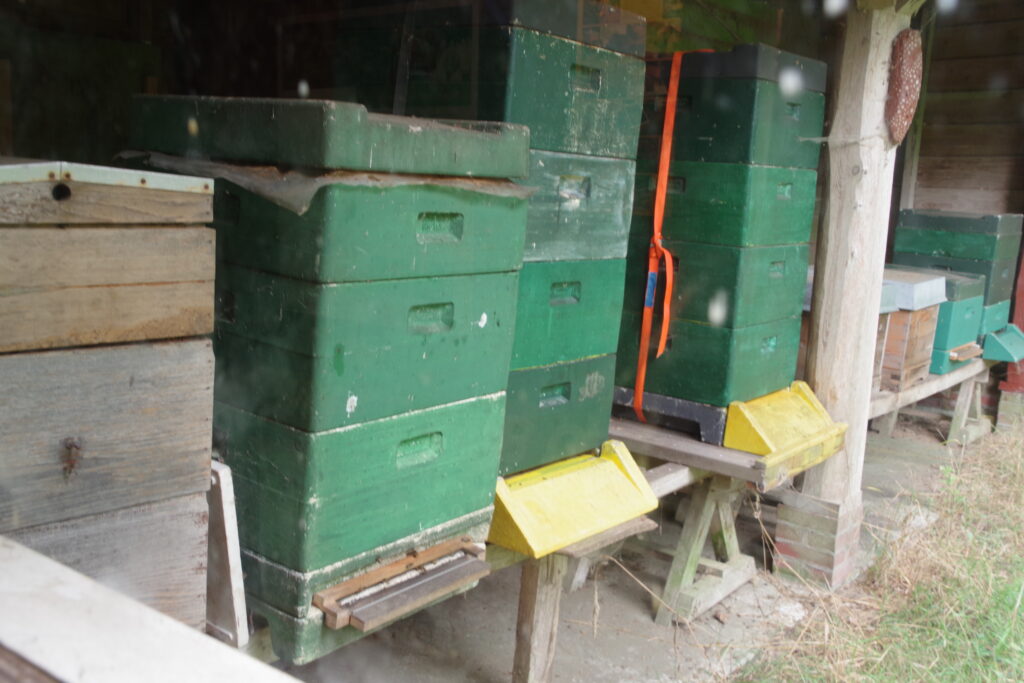 Een aantal bijenkasten in de Bijenstal bij het Bezoekerscentrum Dwingelerveld.
