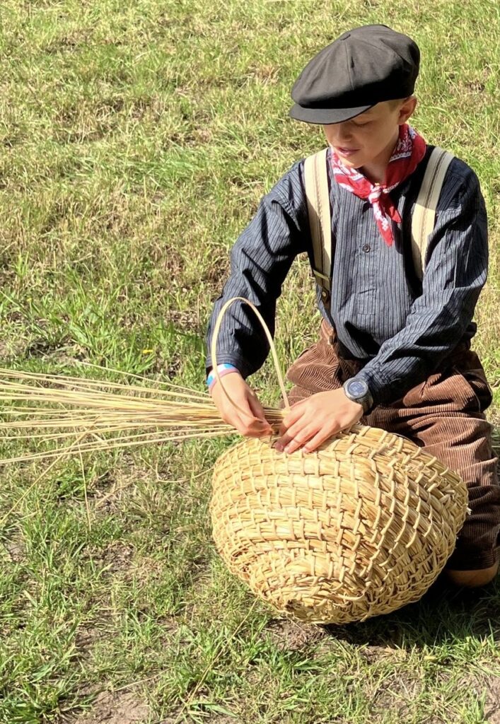 Jongste imker van de vereniging aan het kortvlechten op de Oogstdag van Lhee.